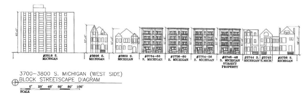 Elevations of 3736-3766 S Michigan Ave by Hanna Architects