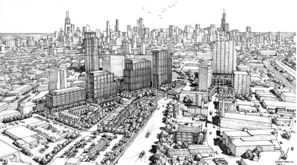 Additional renderings have been revealed for Foundry Park, located along the Chicago River in Lincoln Park. The images come as developer JDL completes its purchase of the site, which was previously earmarked for the stalled Lincoln Yards megadevelopment. JDL is partnering with Kayne Anderson Capital to secure funding.