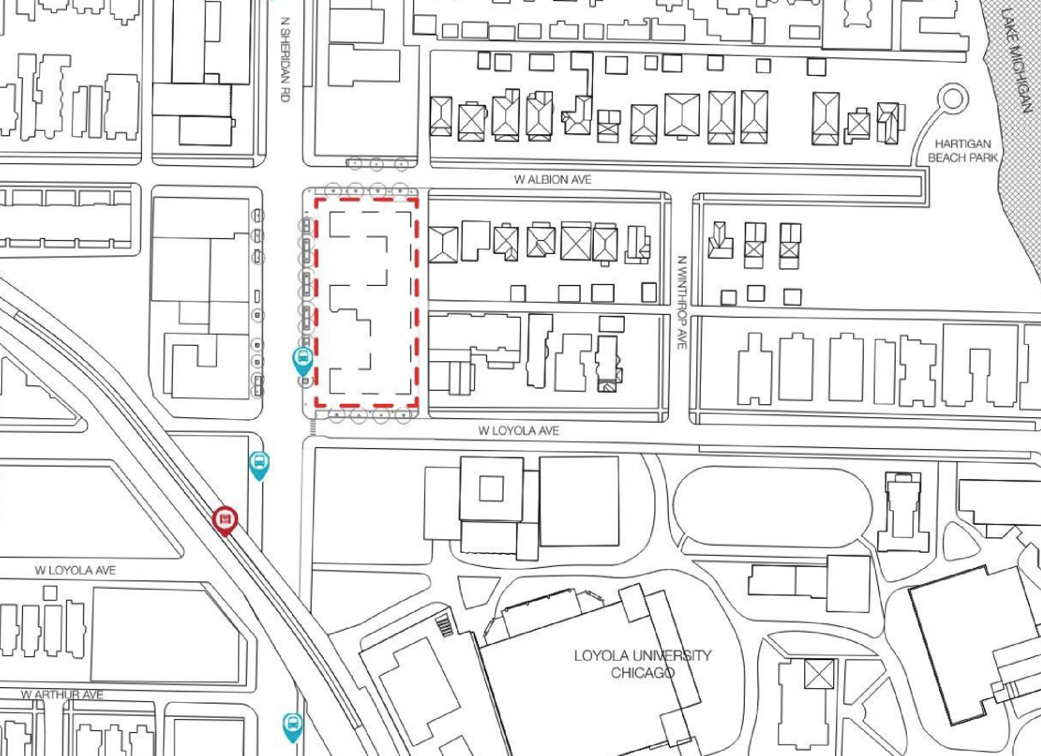 A demolition permit from the City of Chicago allows Loyola University to tear down Campion Hall on North Sheridan Road in Rogers Park ahead of redeveloping the site for a new center for nursing and science. The block-long three-story building, addressed as 6551 North Sheridan, extends from Loyola Avenue north to Albion Avenue.