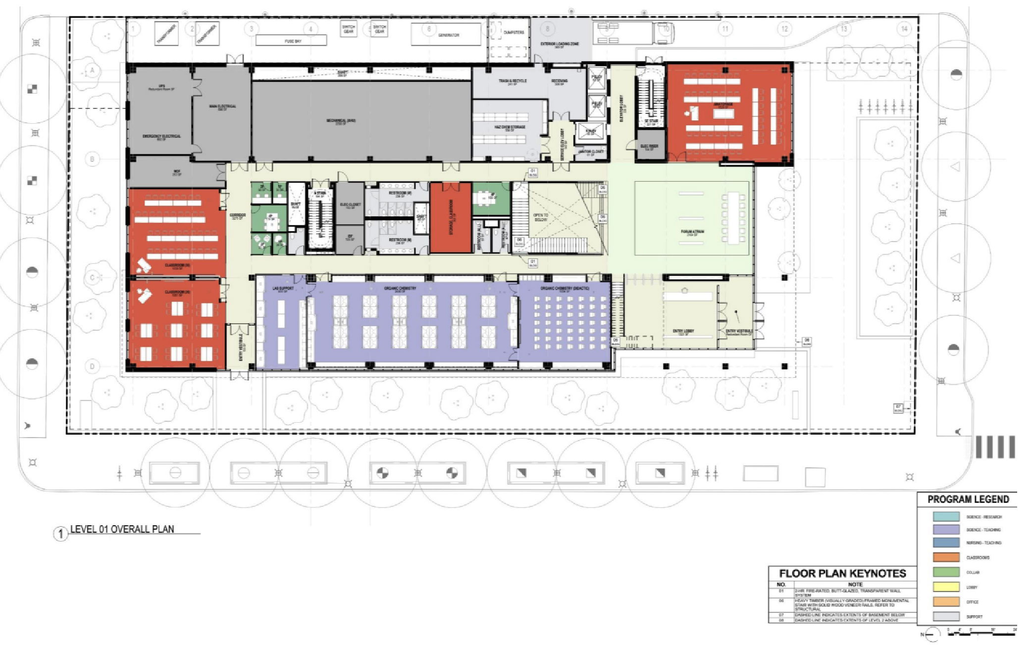 Ground floor plan of new sciences building by Woodhouse Tinucci Architects