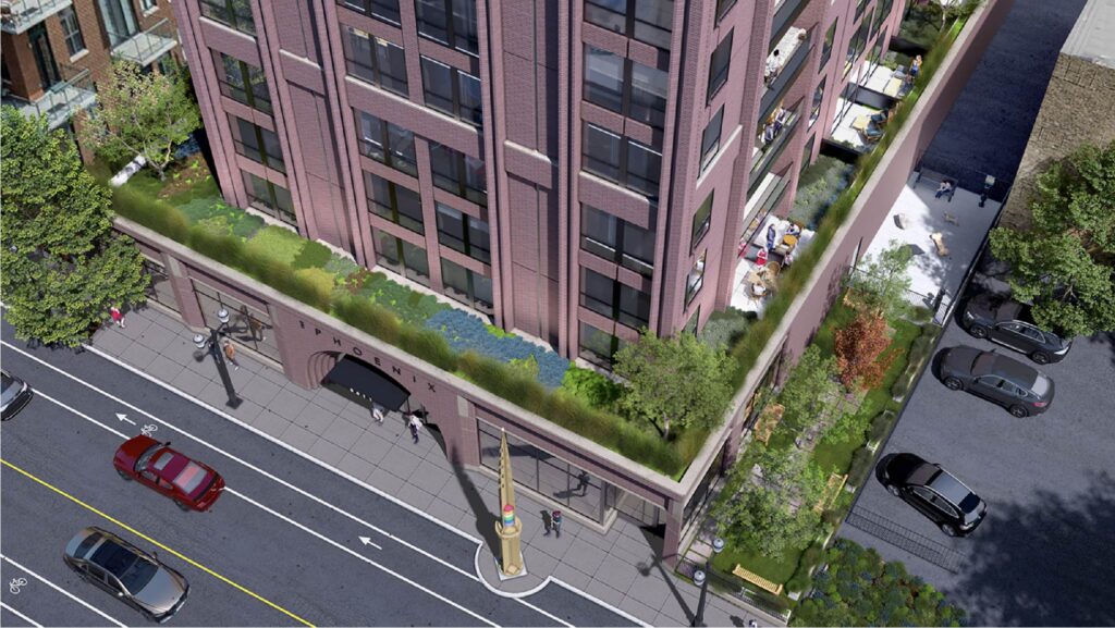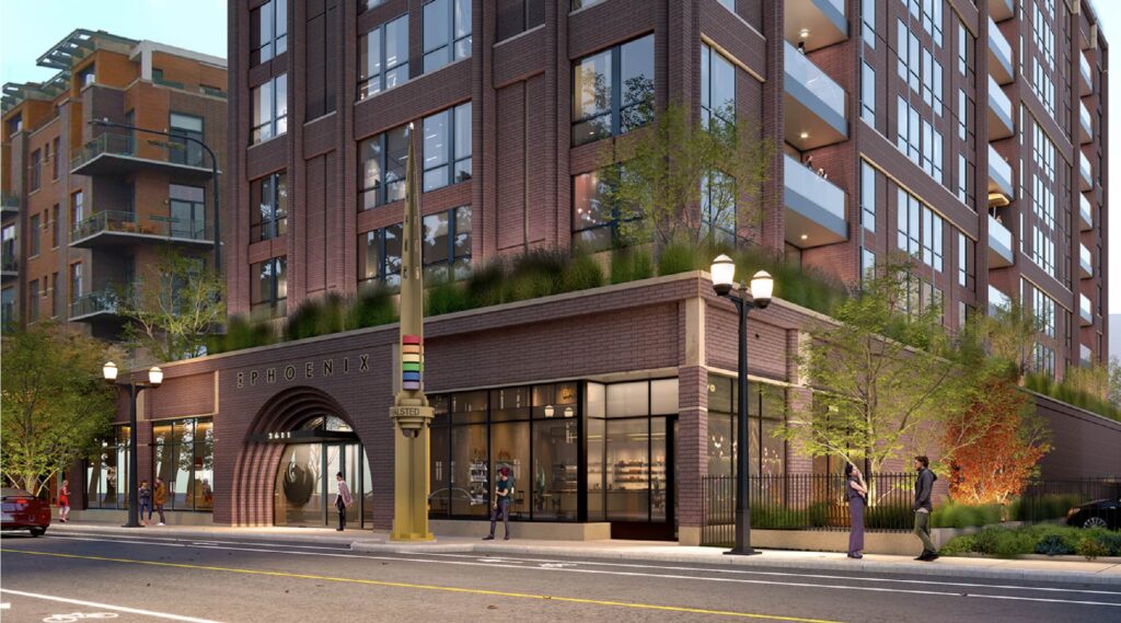 Dubbed “The Phoenix,” the project was unveiled by the 46th Ward and has been in the works since the previous building was demolished over a year ago. Local architecture firm Studio Dwell is designing the 10-story structure, which will be anchored by a one-story podium spanning most of the 24,000-square-foot site.