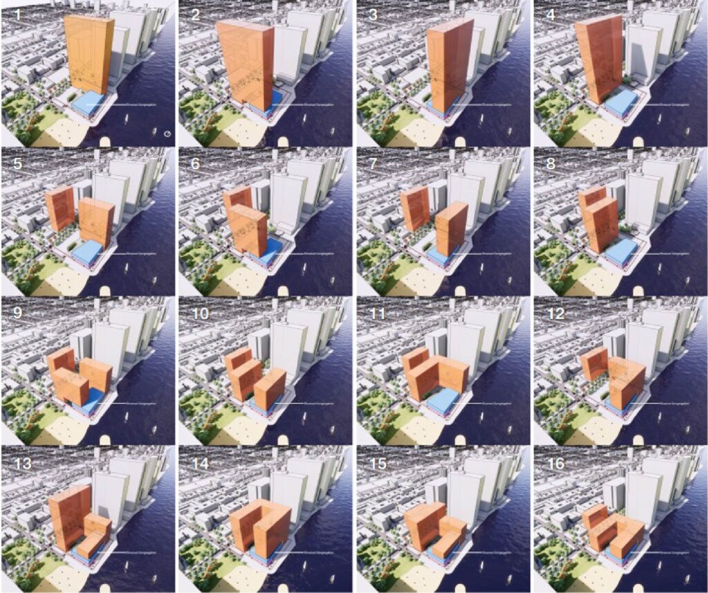 All 16 massings for 5959 N Sheridan Rd by Eckenhoff Saunders