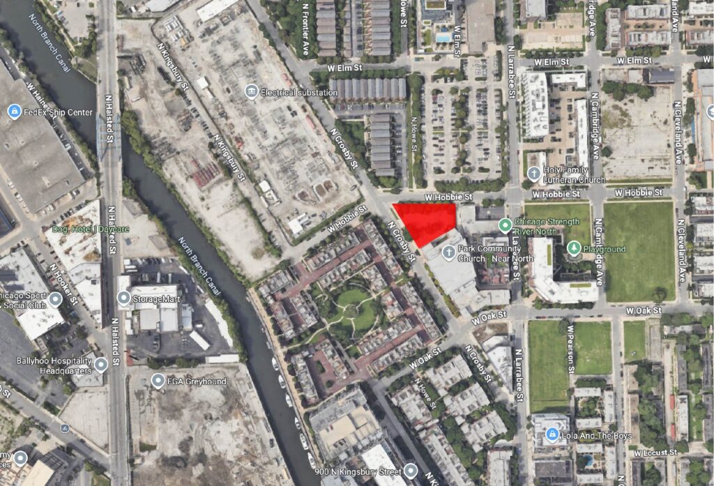 Very initial details have been revealed for a potential mixed-use development at 1039 North Crosby Street in the Near North Side. The project would rise on the corner with West Hobbie Street near the former site of Cabrini Green by the North Branch Canal. Efforts are being led by Park Community Church.