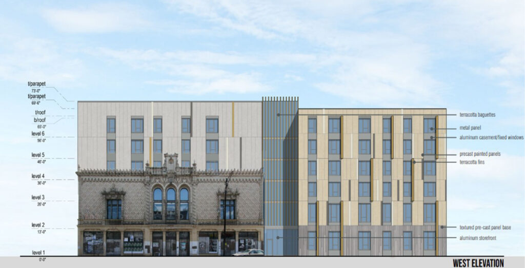 Announced earlier this year, the current plans include a new six-story addition to the rear and side of the historic structure. The project will also feature a 26-space parking lot, a dog run, and a community farm area behind the building. The preserved portion will house a remodeled lobby, a fitness room, and office space for supportive services.