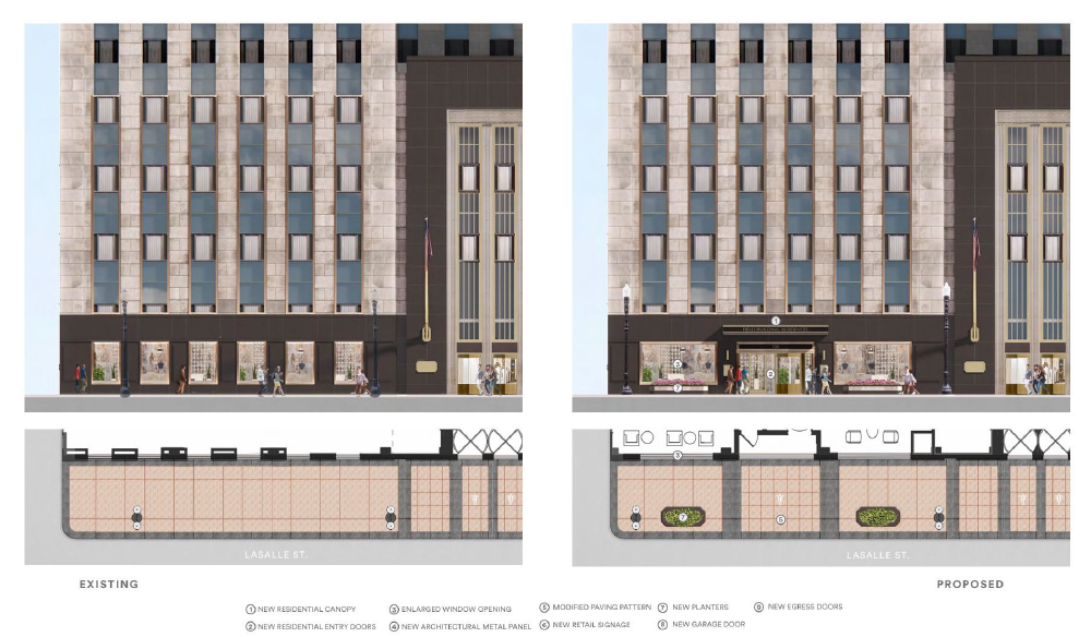This is an amazing reuse of this iconic building. I am glad to see this go forward. I wish the city would rethink how to make LaSalle Street a more pedestrian-friendly place now that so much residential is coming to the area. What about removing some buildings to gain natural light and open park space? How about green sidewalks and trees and less traffic lanes? What if more full floor green spaces on the upper levels of buildings were created for respite? What if some buildings were urban hydroponic gardens for people living nearby? I wish our city planning department would envision into the future more.