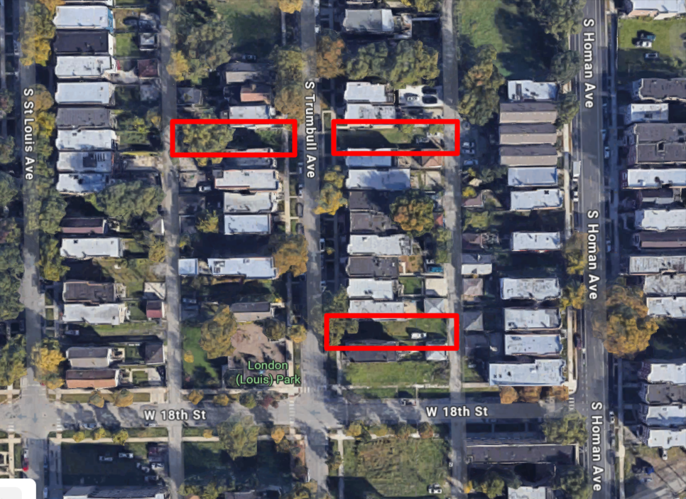 1630, 1631, and 1653 South Trumbull Avenue, via Google Maps