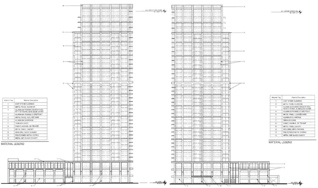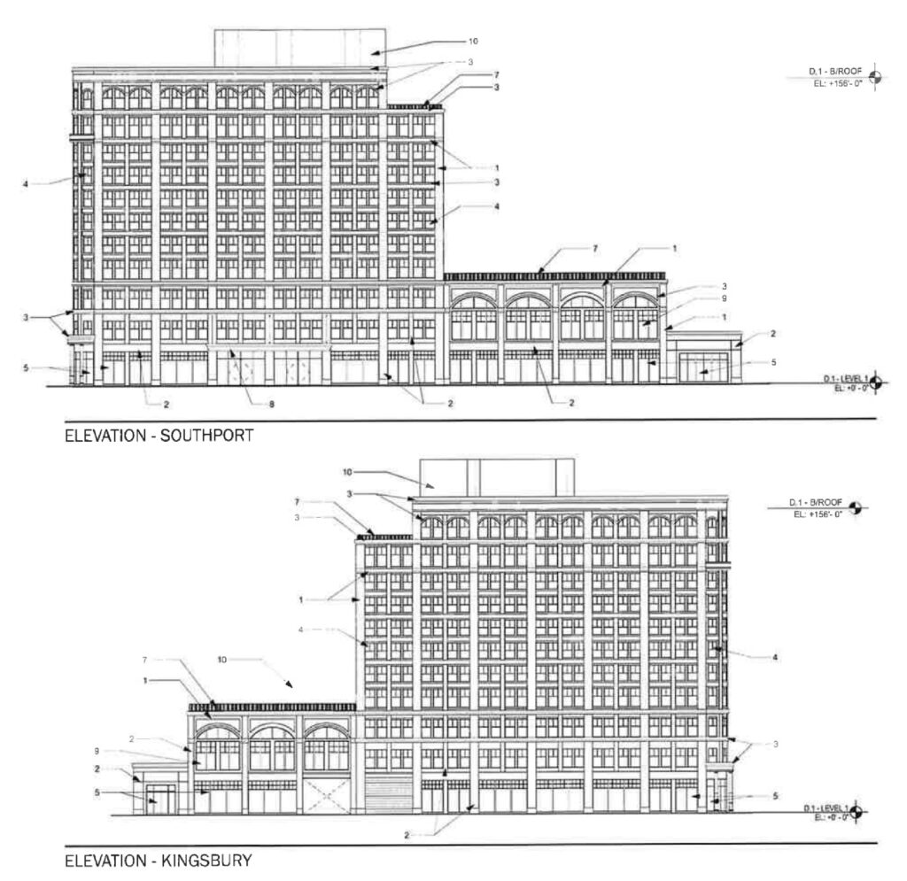 To the north of the wedge will stand the second-tallest structure: a 156-foot-tall hotel featuring a ground-floor restaurant and approximately 180 hotel rooms. To the south will be an eight-story, 116-foot-tall building at the corner of Southport and Cortland; a 13-story, 169-foot-tall building along Kingsbury; and a 38-story, 520-foot-tall skyscraper at the southern corner.