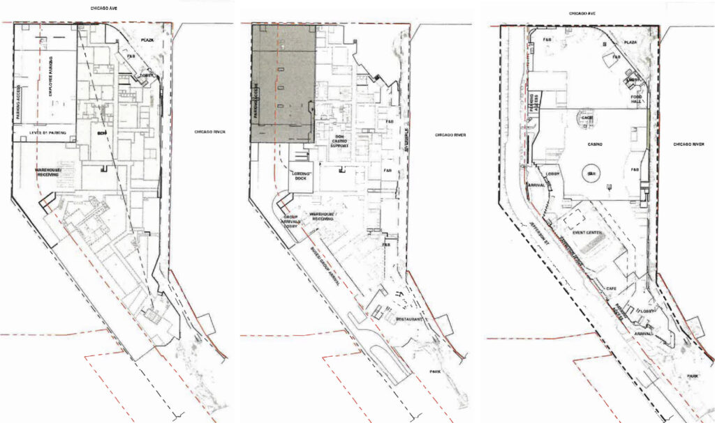 Since then, Bally’s has been pitching a similar casino in the Bronx in New York. With that proposal came some of the first renderings of the Chicago property’s interior. The core casino structure will reach eight stories in height at its tallest. Most of this height will consist of parking on the upper levels, providing 2,500 spaces along with a few surrounding surface lots.