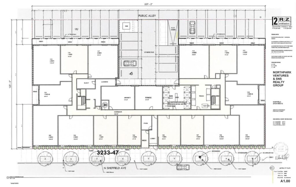 Site plan of 3233 N Sheffield Ave by 2rz Architecture