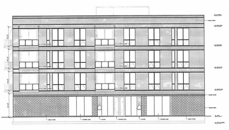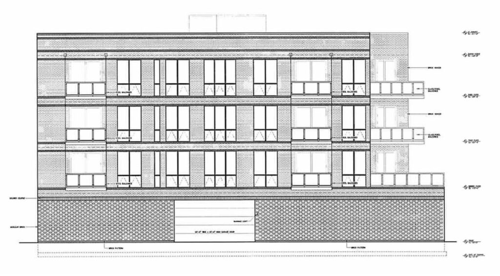 The new building’s footprint would occupy the entirety of the site and include a 23-vehicle parking garage on the ground floor, accessed from Bloomingdale Avenue to the south. A small lobby and mailroom would fill out the remainder of the ground-level space. Above, the building would contain a total of 30 residential units, six of which would be designated as affordable.