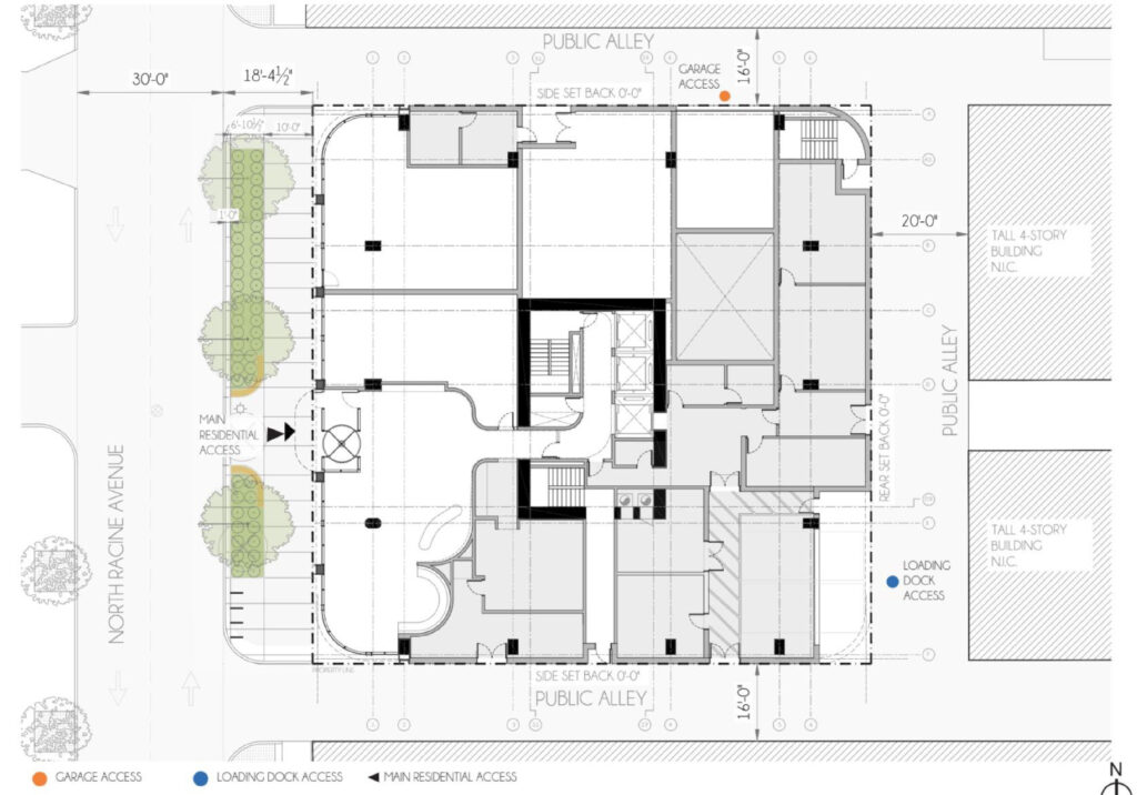 Site context diagram of 215 N Racine Avenue by Archeo Design Studio