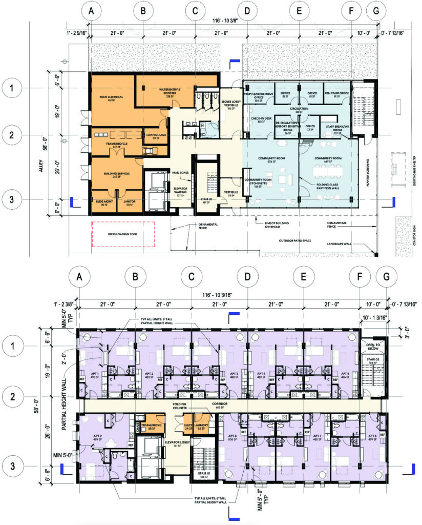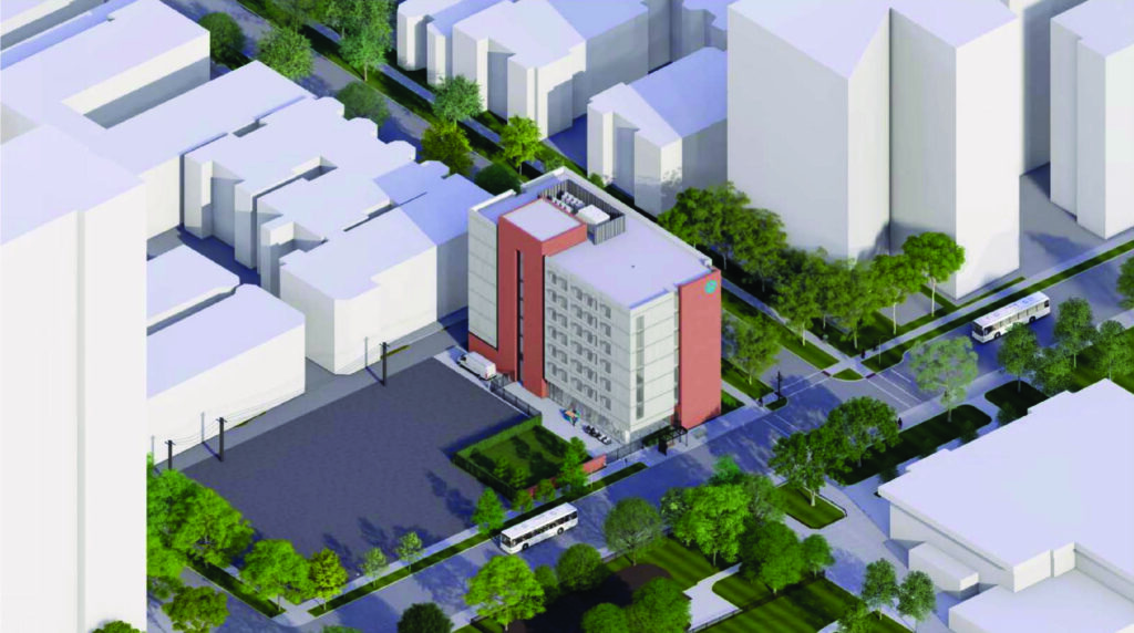 The floors above will hold 54 residential units made up entirely of studios with a defined bedroom area, small kitchen, and private bathroom. There will also be a laundry room on each residential floor. These units will be available to women earning no more than 30 percent of the Area Median Income, or approximately $25,000 per year.
