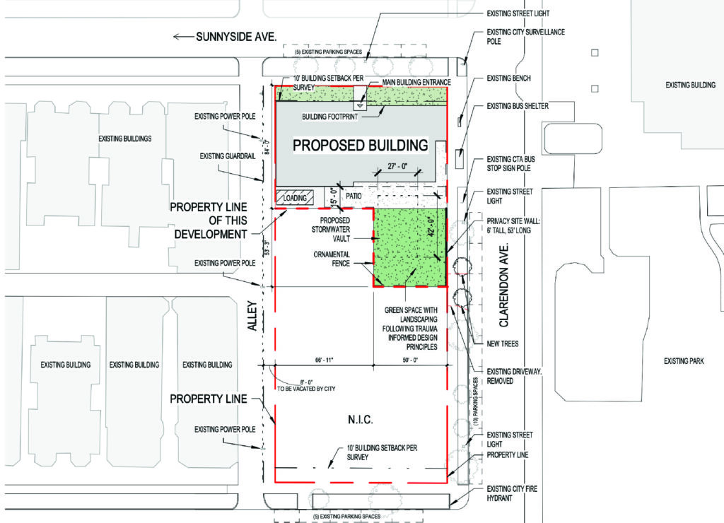 Plans have been revealed for the first phase of a new campus for non-profit Sarah’s Circle at 4458 North Clarendon Avenue in Uptown. Bound by West Sunnyside Avenue to the north and West Agatite Avenue to the south, the future complex will replace one of the last remaining lakefront lots across the street from the newly reopened Clarendon Fieldhouse.