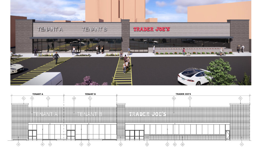 Why not move the TJ storefront up to the sidewalk/street and put the parking in the rear? The rendering looks like a suburban strip mall. Put the store facade at the sidewalk, not cars!