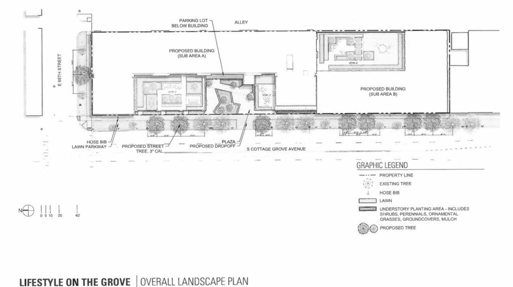 Plans have been revealed for a new mixed-use development at 6501 South Cottage Grove Avenue in Woodlawn. Located at the intersection with East 65th Street and steps away from the CTA Cottage Grove Green Line station, the proposal would replace a small existing commercial plaza and its parking lot.
