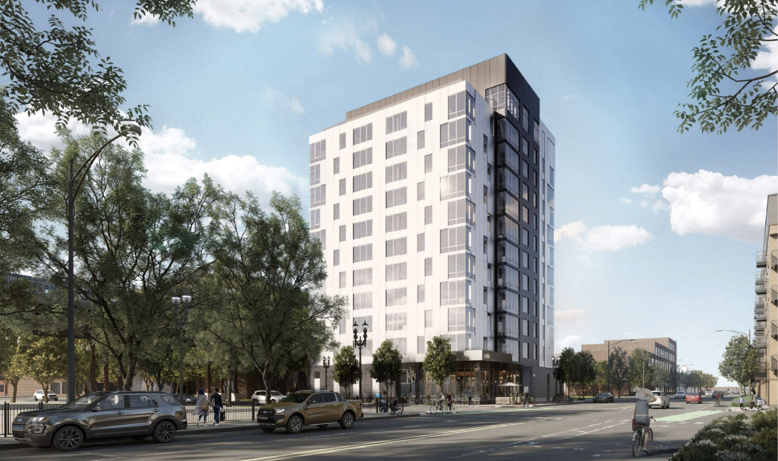 The new tower will rise across the street from Phase 1A and Phase 1B of the Southbridge development. Permits were issued on October 28, 2019 for 2310 and 2344 South State Street. Each is a six-story, 103-unit apartment building, and both were completed in 2022.