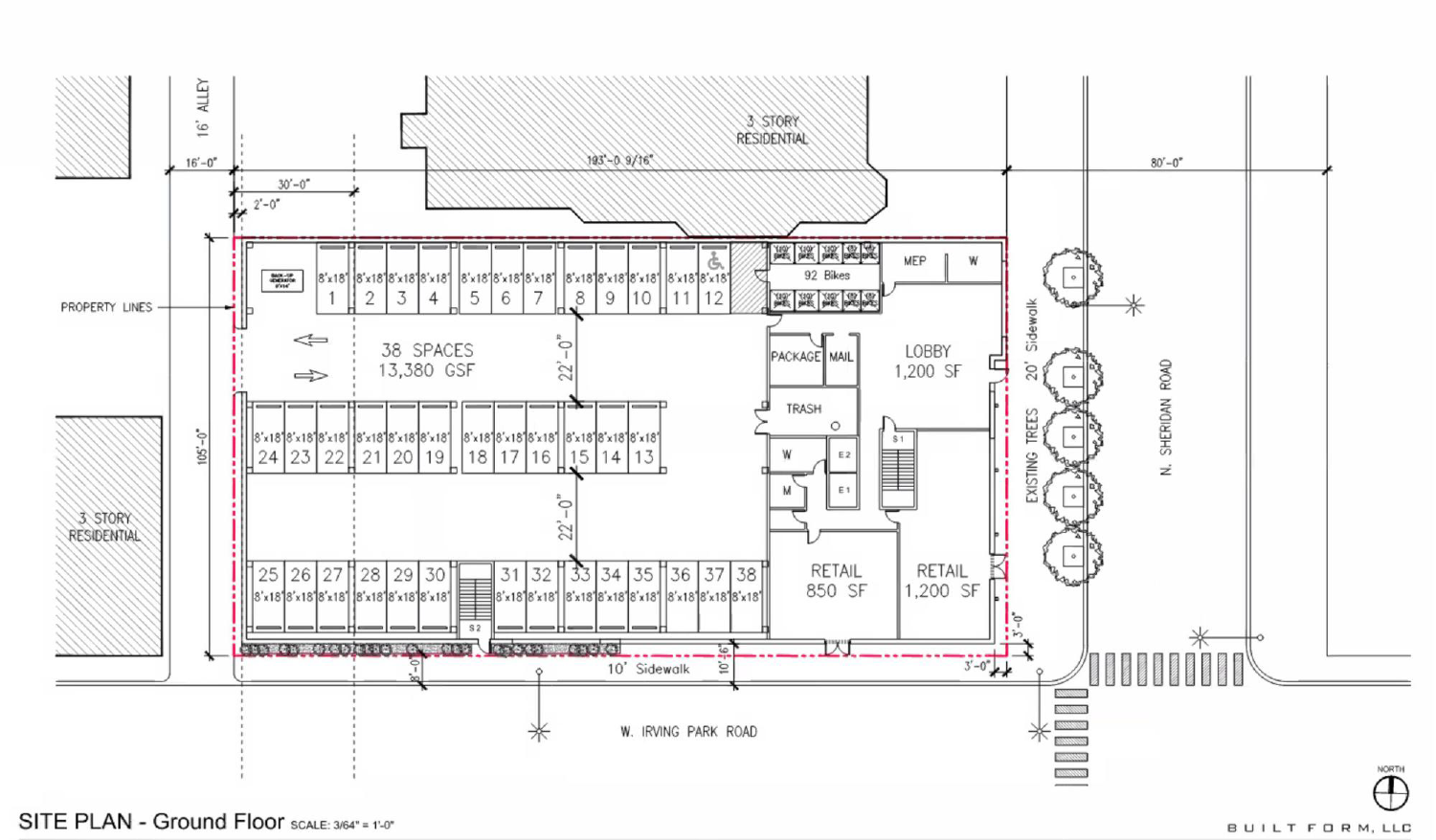 The new building, addressed as 4006 North Sheridan Road, is designed by Built Form, and Macon Construction Group will be the general contractor. All 91 residences, expected to be a mix of studio, one-bedroom, and two-bedroom floor plans, will be located on the upper six levels. The first floor will contain approximately 2,000 square feet of retail space, the residential lobby, a bike-storage room, and a 38-space parking garage.