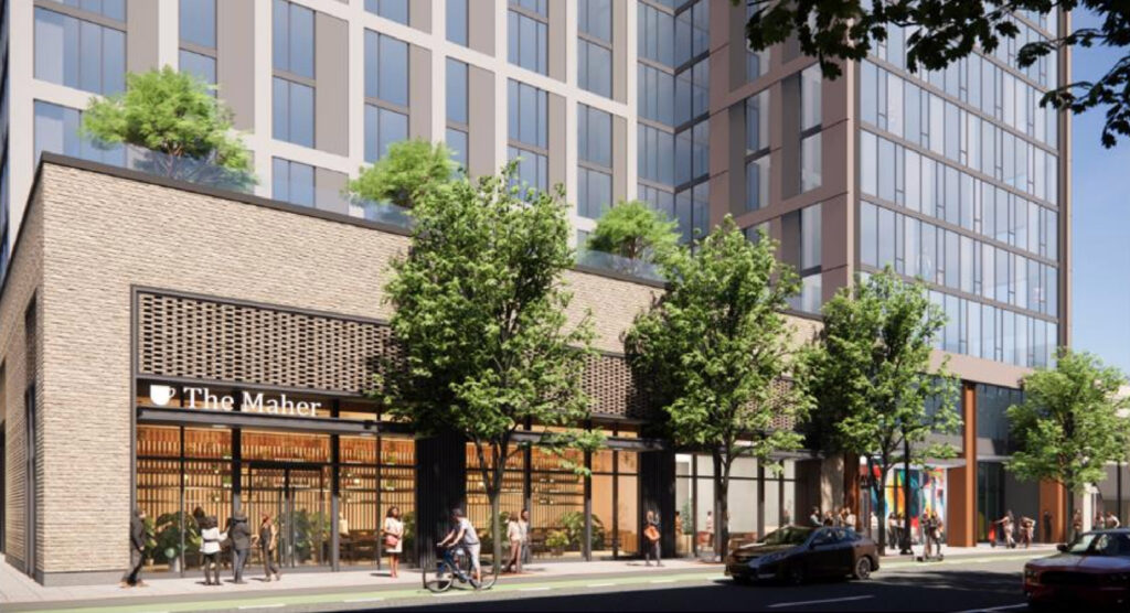 The upper floors will contain 419 residential units, including studios and one-, two-, and three-bedroom layouts aimed at families. Of these, 84 units will be designated as affordable, allowing the project to benefit from a tax incentive that will phase in property taxes over the first 12 years. Residents will also have access to amenities such as a dog run, gym, lounges, and more.
