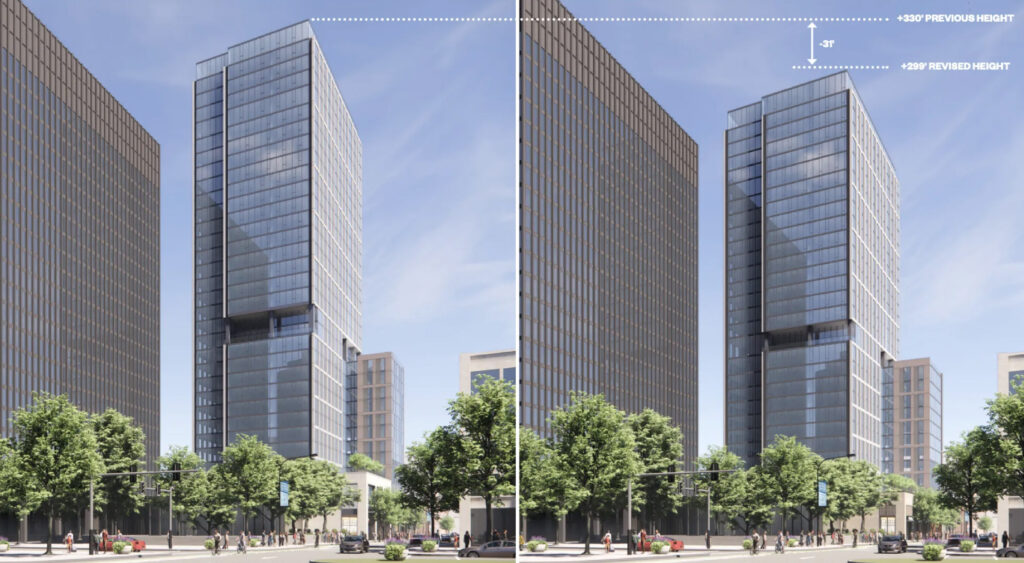 Drew, all of the changes mentioned in this YIMBY article regarding the reduction of the height from 330’/31 doors down to 299’/29 floors by removing one floor of residences and one floor of parking (and leasing parking spaces in nearby city parking garages) are the exact same changes made to the project to get it approved by Evanston’s city council last November, as reported in an article published by Evanston Now, dated Nov. 11 2025.