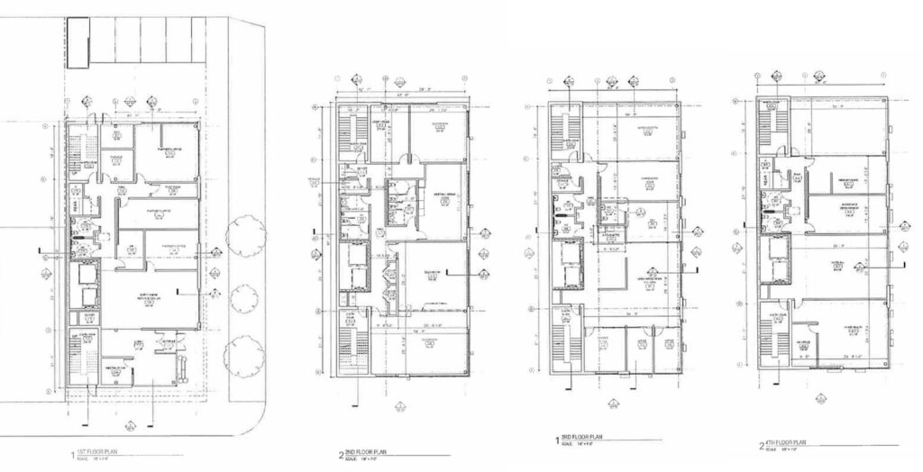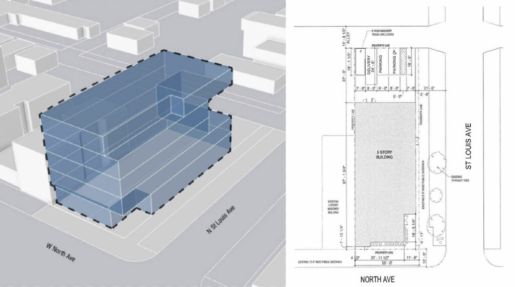 Efforts are being led by local organization ASI Health, which has been working with architecture firm UrbanWorks. Their plans call for a new five-story structure set to replace a surface parking lot. The design features a boxy massing articulated by angled window bays and large terraces. This will be supported by two parking spaces accessed from the rear alley.