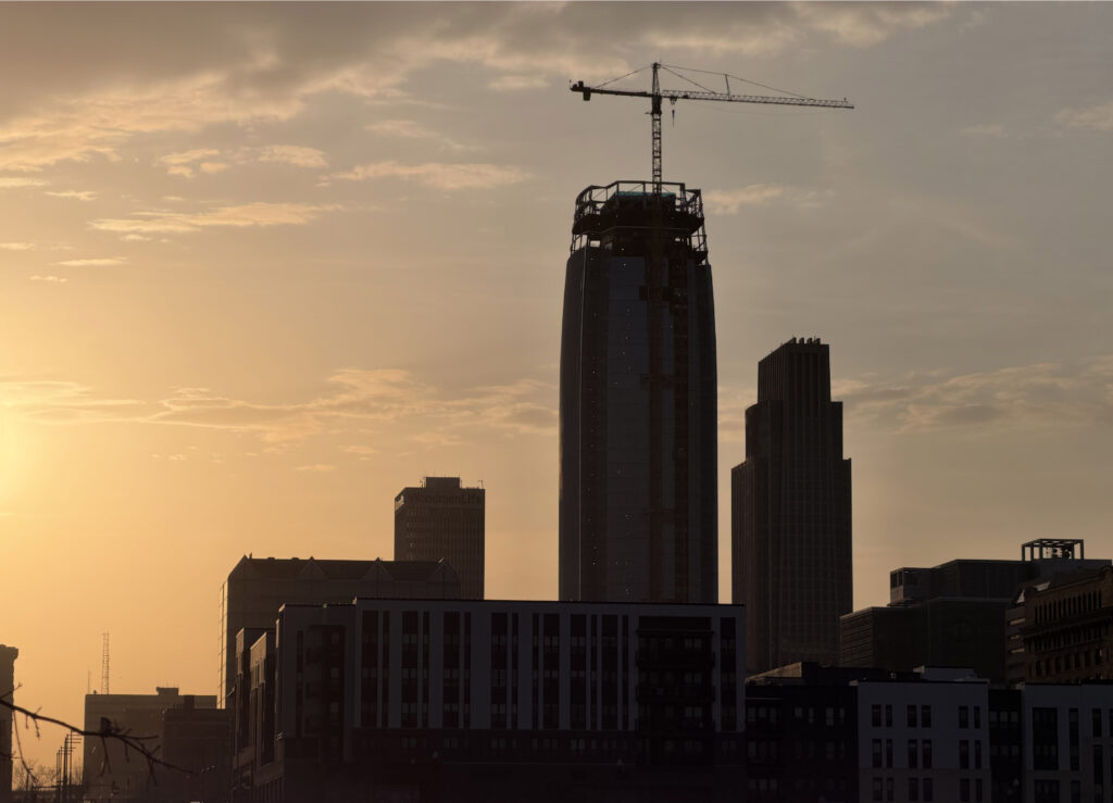 One of the largest being the new $421 million Omaha Streetcar, announced alongside the tower and slated for completion in 2028, with construction already well underway. The streetcar will connect downtown to midtown, linking Mutual of Omaha’s current historic headquarters to the west with the new tower to the east.