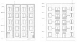Updated plans have been revealed for a residential development at 1453 North Sedgwick Street in the Near North Side. Located at the intersection with West Blackhawk Street, the proposal would replace a pair of three-story homes across from the Marshall Field Garden Apartments.